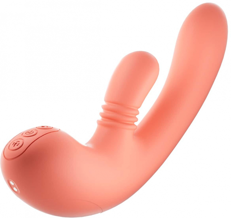 Вибратор с движением головки и вращением клиторального стимулятора "Amovibe Vibella" оранжевый